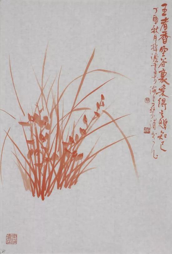 这次展览中的展品,都是近两三年间,忙中得暇,藏画赏画之余一时技痒,累积片纸所得。因为有馆藏诸多名家作品,之有利条件,重拾画笔,进而不再亦步亦趋,以玩家心态为之,把画家的心态放置一边,信笔涂抹,墨戏而已。历年所绘,不敢登大雅之堂,多以人情转送友朋,是以唯有新作可供展示者。因临时备展仓促而成,检点己作,所绘无非兰、竹、雏鸡、麻雀、葫芦数种,不脱窠臼,不免眼高手低之讥。唯追慕前贤文人风神,以清雅为旨,寄兴于微物,几以免俗气满纸。其中一组画于仿古笺上的小品,更蒙师友垂爱,一一题跋于上,为作品平增雅韵。