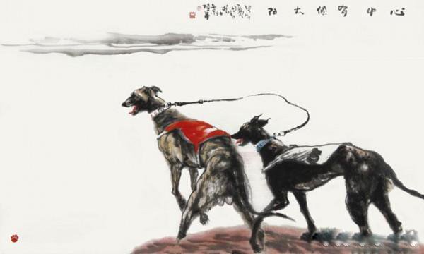 艺术家落笔潇洒,一转一束,皆成意趣。擅长以马犬两种动物入画,他的绘画充满了造型的动感,展现出生命运动的充沛活力,在笔线和墨韵中洋溢出一种种感兴的快意。