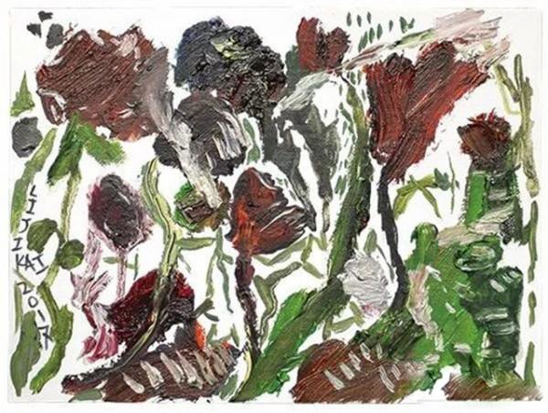 经过一番斟酌,我为李继开近来创作的这些小作品起了一个标题:“灼灼朝花”。“灼灼”,既是言其如火的灿烂,也暗含如火的焦灼;“朝花”,既言其如迎着朝阳怒放的鲜美晨花,也是因为鲁迅《朝花夕拾·小引》中的一段文字——“带露折花,色香自然要好得多,但是我不能够。便是现在心目中的离奇和芜杂,我也还不能使他即刻幻化,转成离奇和芜杂的文章。或者,他日仰看流云时,会在我的眼前一闪烁罢。”——这段优美、低回、却又隐含了欲言又止的愤激之情的文字,与李继开的这些画,所触发的幽深感喟是极为相似的。