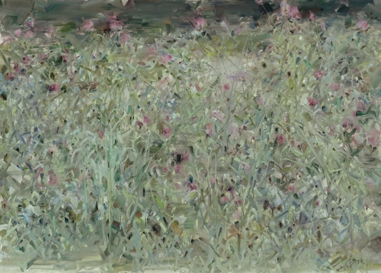 一直以来,李强将自己的艺术思考放置在对自身的反观与绘画语言本体探索之上。最近,他更是坚定地保持与自己既定过往的对抗,试图摆脱画面流畅的惯性,开始关注语言本身的矛盾和张力。 他反复画玉兰,反复画花园中一片杂草丛生的角落,反复画枝桠嚣张的各种可能性,进而去寻找一种状态,一种花、草、枝桠与其生长的环境的天然关系,他不断画局部,画迷朦,画一种若有若无的效果,反复体味虚无中的实存。李强选择了一个难题,他所画的是一团乱局,是几乎所有画人都觉得无法画的对象。而李强却把这杂乱无章的繁华作为一个艺术的课题,他立场去破解,在所有人认为无序的存在中建立审美关系。