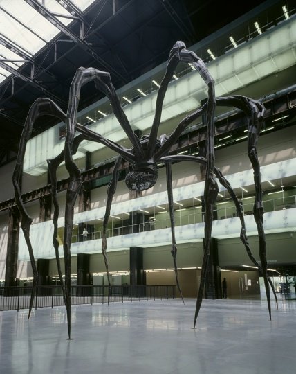 她标志性的作品“蜘蛛”代表了她的母亲,同蜘蛛一样,母亲在家族的古董挂毯修复作坊里也扮演着织布与修复的角色。因此“永恒的丝线”也代指维系母子关系的脐带。蜘蛛从自己的身体中织网,建造出一座极具生命力的建筑,正如布尔乔亚从自己的身体中来创造雕塑。