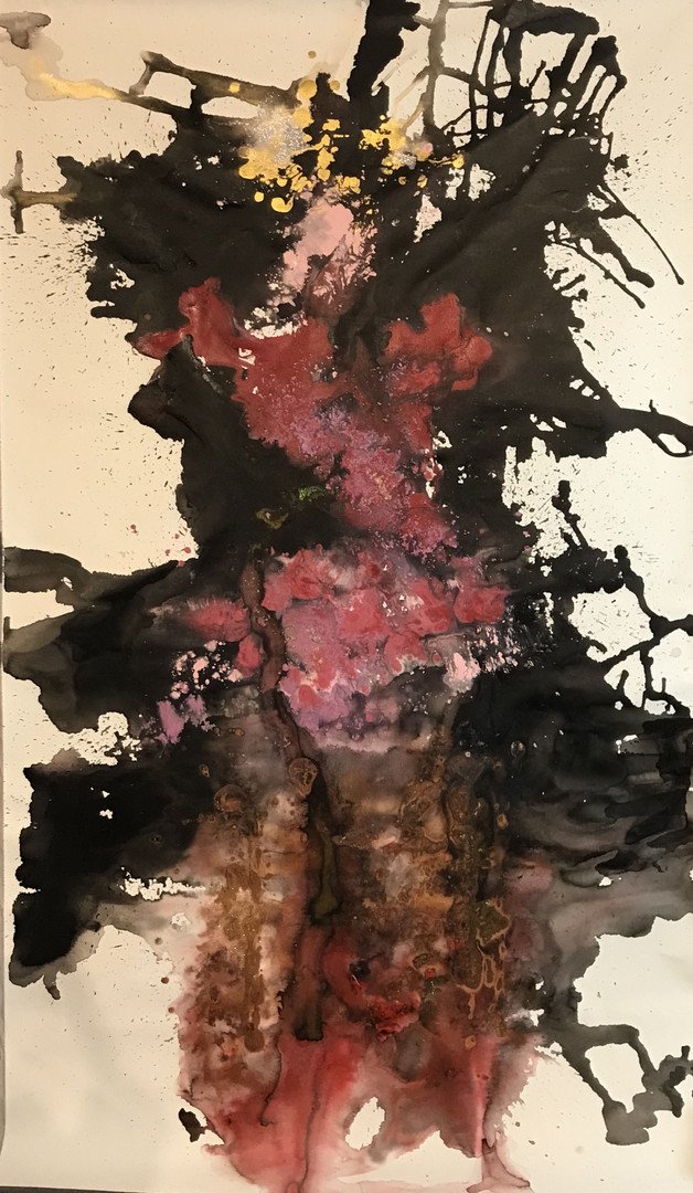 本次展出作品以流立体创作技法为轴贯穿展示。在流立体绘画中,通过自然韵律,带动颜料恣意流淌,让流动中层层叠叠来回交融的色流体形成画面意向。画作完成前,点石成金,从“无题”走向“有题”,在偶然与必然间,建构多维立体空间。流立体系列探讨虚幻与真实,于抽象与具象间游走,穿梭多维度空间,连接成为虚空与实体的界面。