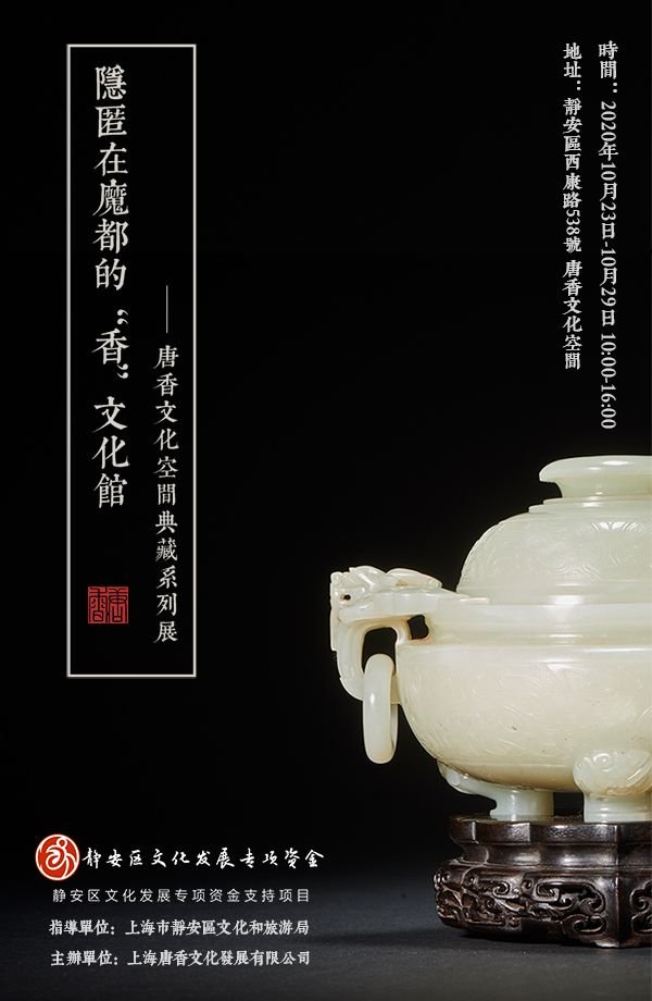 2020年10月23日-10月29日,隐匿在魔都的“香”文化馆·唐香典藏系列香文化展在静安区文化与旅游局的指导下,静安区文化发展专项资金的支持下,将于唐香文化空间隆重举行。本次展出以“香”为引,以器载道,艺兼四雅,是一场“香”气四溢的东方美学盛宴。