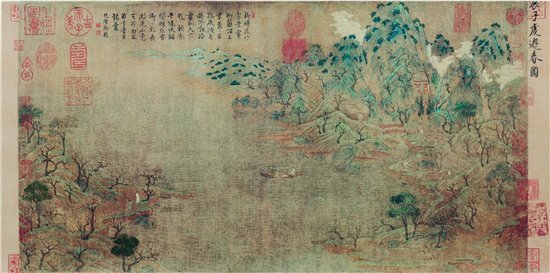 张伯驹先生自青年时代起,从军旅,投银钱,履历多途,终以文化传承为毕生奋斗的事业,数次与故宫偶遇缘契,参与文博文化事业。他一生所藏文物精华,也大多归于故宫博物院收藏,兑现了其“予所收蓄不必终予身为予有,但使永存吾土,世传有绪”的初衷。故宫博物院共计收藏有张伯驹先生《丛碧书画录》著录的古代书画22件,几乎件件堪称中国艺术史上的璀璨明珠。如晋·陆机《平复帖》是我国传世文物中最早的一件名人手迹;隋·展子虔《游春图》为传世最早的一幅独立山水画。上述二者在中国书法、绘画史上为开篇述祖之作。其余如唐·杜牧《张好好诗》、唐·李白《上阳台帖》,均为传世孤品;宋·黄庭坚《诸上座帖》、赵佶《雪江归棹图》等,都是在我国艺术史上占有独特地位的重要文物。这其中,包括晋·陆机《平复帖》、唐·杜牧《张好好诗》、宋·范仲淹《道服赞》、黄庭坚《诸上座帖》等在内的8件古代法书精品是1956年张伯驹、潘素夫妇捐赠国家,国家文物局后调拨故宫博物院的;隋·展子虔《游春图》、宋·赵佶《雪江归棹图》、明·唐寅《王蜀宫妓图》等是张伯驹先生让与国家,国家文物局收购后陆续调拨故宫博物院的;唐·李白《上阳台帖》则系张伯驹先生赠与毛泽东主席,1958年中央人民政府主席办公室将其调拨故宫博物院。另外,故宫博物院还曾于1959年购买了张伯驹先生曾收藏的宋·赵孟坚《行书自书诗》。需要特别强调的是,隋·展子虔《游春图》、唐·杜牧《张好好诗》、宋·范仲淹《道服赞》等都是故宫博物院当时有意收购,但因各种原因而未能入藏的。它们最终能由故宫博物院收藏,为中华民族所共享,张伯驹先生居功至伟。
