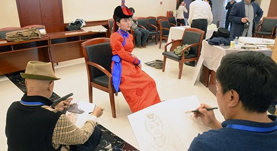 写生过程中,乌兰牧骑的歌舞表演也让众多画家感叹内蒙古基层文化建设的欣欣向荣。“旗县一级能够维持住乌兰牧骑是很不简单的事情,我很感动。”美术家尼玛泽仁不停用画笔在速写本上记录乌兰牧骑歌舞演员的舞蹈动作。他说从地域的风貌、牧民的形象、乌兰牧骑的歌舞表演来看,内蒙古文化工作抓的很扎实。