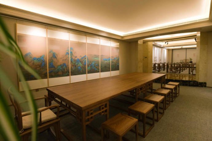 书院会客厅则是仿照故宫宝蕴楼二楼复原的会客厅,背景为明代仇英绘制的《玉洞仙源图》(仿制),是紫禁书院广州分院正式的会客场所,用于日常重要嘉宾接待,仪式等。紫禁学堂用于书院日常教学使用,设教室两间。开放之后引入资源开设半年制及一年制课程,讲授中国古代建筑形制、青铜器、瓷器、书画审美演化、古代礼仪、服饰等等知识。