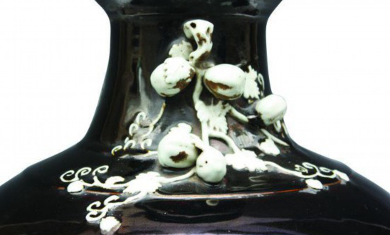 清代景德镇烧造的黑釉瓷又称为“乌金釉瓷”“铁黑釉瓷”,是景德镇窑创烧的一种名贵单色釉。因釉的原料取自景德镇附近的乌金土(含铁13.4℅),故称乌金釉。[