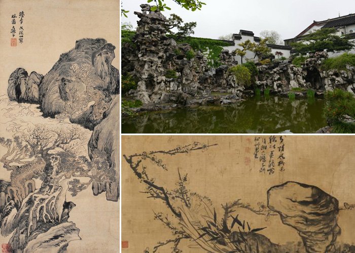 周春芽:对,我最近几年比较常去扬州,但是在九十年代末,我也去过苏州一段时间,去画了一些关于太湖石题材的作品,但这次常去扬州的原因不仅仅是去看它的园林,还去找以前的艺术家,有一些艺术家是我比较喜欢的,比如说石涛;也包括龚贤、髡残;有一些古代艺术家,他们所创造的……