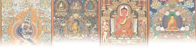 “唐卡”是音译,即藏地卷轴佛画,受宗教启迪,为信仰服务的神本主义内容是其自古至今的创作主题。若依其具体描绘的图像内容,又可分为五项:一是佛陀菩萨类;二是密宗本尊、护法、罗汉类;三是高僧上师造像类;四是曼陀罗、宇宙天体及藏医药类;五是记事及箴言书法类。若依唐卡制作的方法材料异同,唐卡又可大致分为“止唐”和“国唐”两大类。