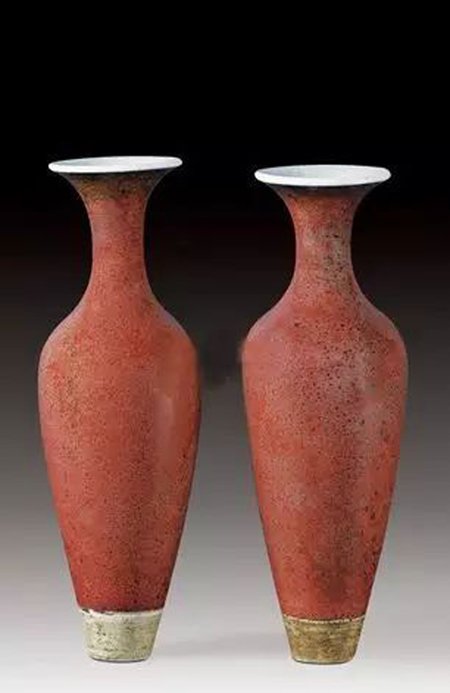 莱菔即萝卜,莱菔尊故又称“萝卜尊”。莱菔尊为清康熙朝独特尊式之一,器呈侈口、细长颈下饰双弦纹、丰肩、长腹下敛、假圈足,足脊窄细若萝卜。莱菔尊造型有豇豆红釉、天蓝釉、苹果青釉等品种。康熙朝创新的莱菔尊中以豇豆红釉为最佳。