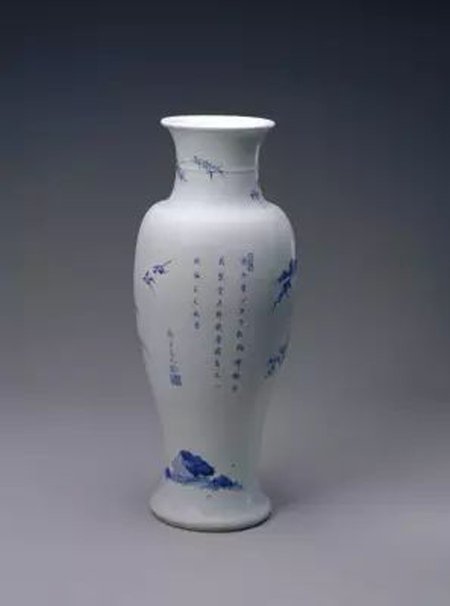 清康熙青花松竹梅纹诗句观音尊北京故宫博物院藏