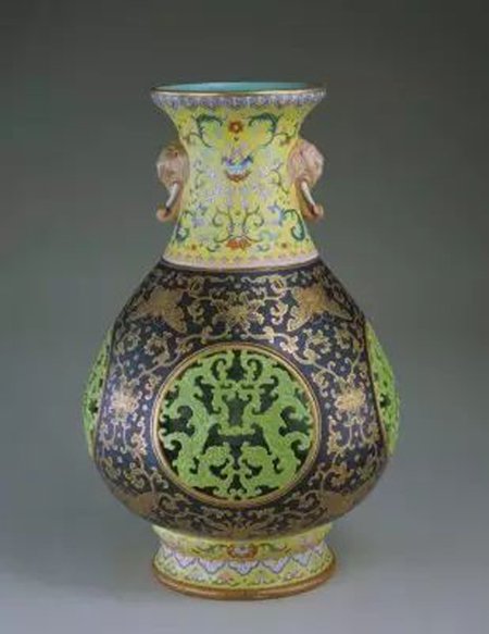 清乾隆粉彩镂空蟠螭纹象耳转心瓶北京故宫博物院藏