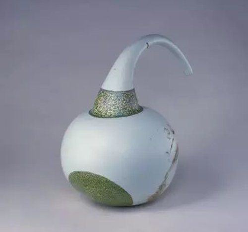 茄式壶为清康熙朝景德镇窑创烧壶式之一,为清康熙官窑所独有。茄式壶造型奇特,器呈小口,颈部细长向一侧弯曲,腹呈长茄形,圆底施釉,放置不稳。从其造型看,有人认为其当为宫廷医疗用器,也有人认为其为陈设器物。