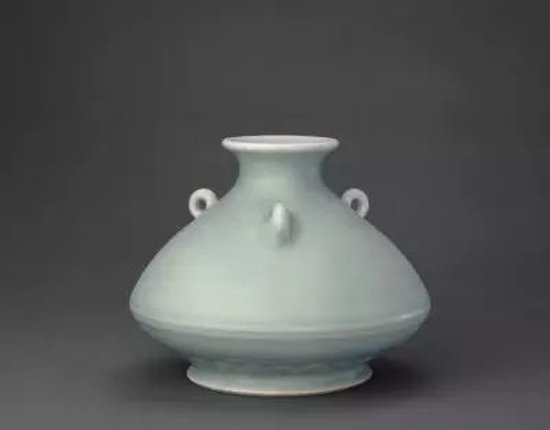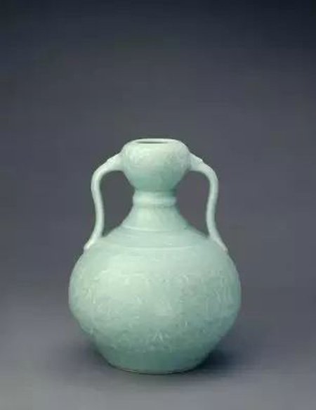清雍正粉青釉凸花如意耳蒜头瓶北京故宫博物院藏
