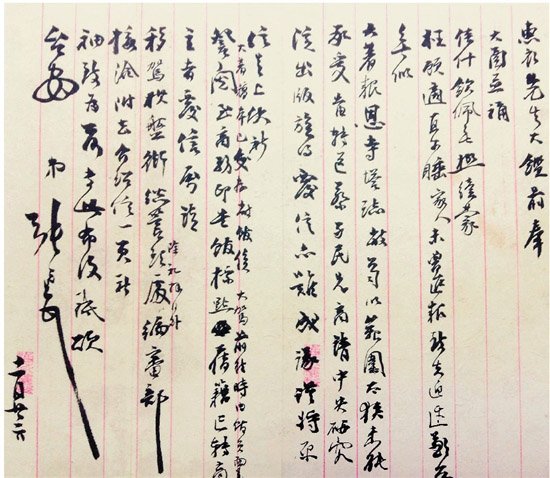 致覆者,前日卞绍奎君来,出示五月廿日手教,展诵如亲謦欬,深慰饥渴,卞君属书堂颂遵命写成,期于今日来取。惟深愧不舞之鹤为羊公羡耳。承示玉海楼藏书将归贵馆,既保前贤之手泽,亦增多文为富之,先闻之欣慰。手覆祗颂台安。 附呈近作一首,并乞教正。