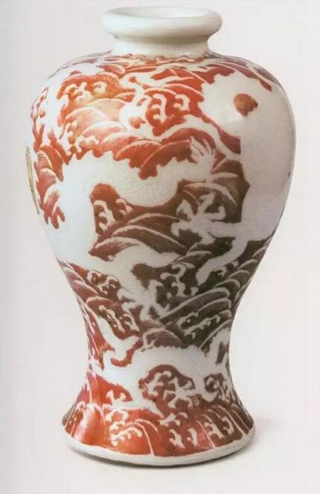 颐和园藏康熙青花釉里红暗刻龙纹梅瓶