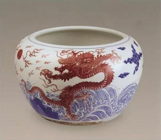 故宫博物院藏青花釉里红双龙戏珠纹缸
