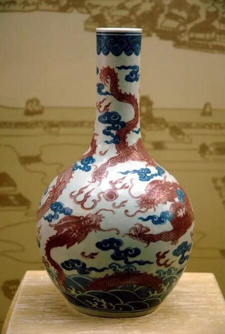 颐和园藏咸丰青花釉里红云龙纹天球瓶