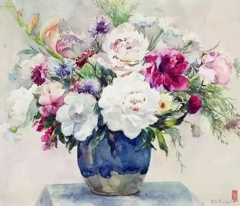 《芍药》 萧淑芳作 水彩 37.7cm×43.7cm 1955年
