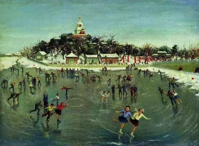 《北海溜冰》 萧淑芳作 油画 60cm×81cm 1954年