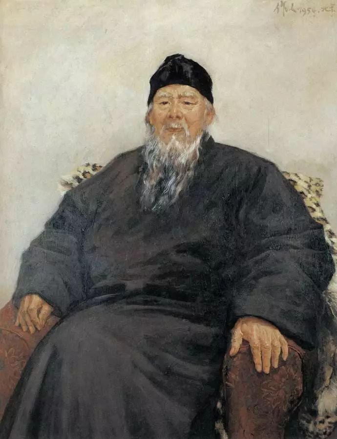 《齐白石像》 吴作人作 木板 油画 113.5cm×86cm 1954年