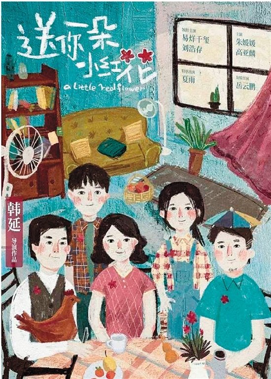 NO.4《送你一朵小红花》油画质感的童趣海报,复古文艺风十足。纯粹的插画不但剧透了人物故事关系,朴实浪漫的笔触更是治愈满格。