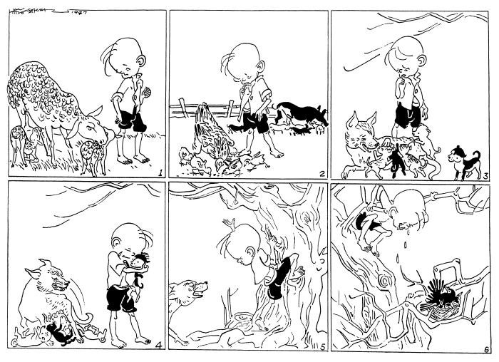 在“三毛”系列漫画里,张乐平着意刻画了许多小细节。比如三毛头上的三根头发,并不是一成不变的,快乐的时候,会变得很飘逸;气愤的时候,这三根头发就会竖起来……仿佛也拥有了表情。