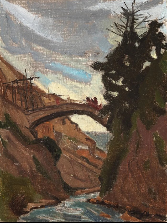 秦烨 尼巴村高桥 布面油画 40x30cm 2020年