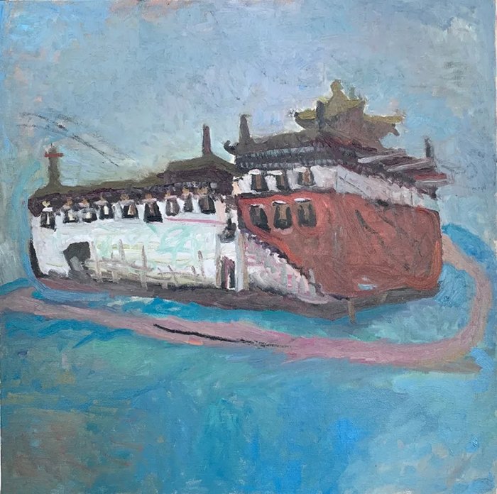鲍菡 和父母的一天 布面油画 90x90cm 2020年