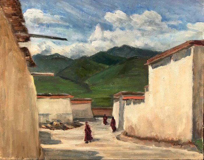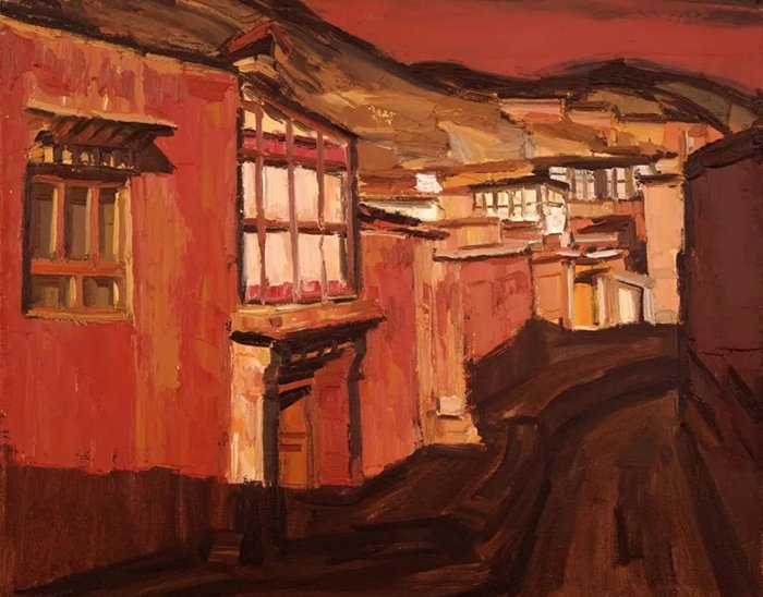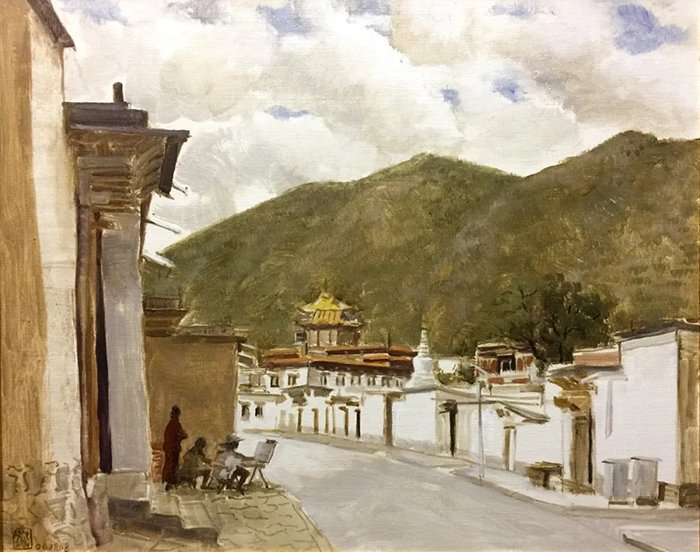 古棕 拉卜楞寺街上 布面油画 50x60cm 2017年