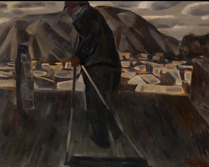 喻昌农 撵屋顶 布面油画 80x100cm 2017年