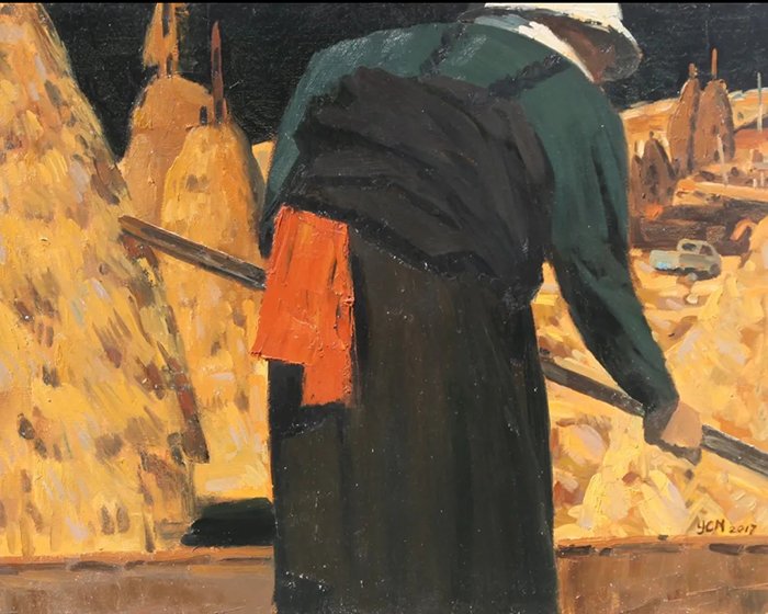 喻昌农 翻青稞 布面油画 80x100cm 2017年