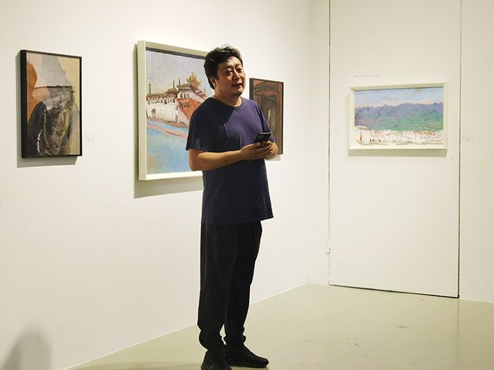 本次展览学术主持、参展艺术家、北京师范大学艺术与传媒学院美术与设计系主任古棕告诉记者:“甘南这片地方,我个人从2011年以后经常去,但是我们这个群体里有几位艺术家可能从2005年、2006年就开始去写生了。我觉得随着年龄的增加,我们对甘南的藏区、藏族人的生活以及他们的自然风景有了更多的体会和了解。尤其是最近几年,,每每从都市繁忙的工作中抽离出来,当我们回到藏区的时候,总能感受到那片土地对心灵的一种清洗。今年经过疫情之后,6月到8月,我们又去了甘南。经历了近半年的疫情和隔离,耳边不断地听到很多人离去的消息,会让人突然认识到身体的健康以及人与自然环境的和谐是多么重要。对亲人之间、朋友之间的关系也多了一层感性的思考。当我怀着这样一种心态和思考,再去甘南写生的时候,我发现自己的画中更多地揉进了一种浪漫,融进了一份热爱,也融入了一股歌颂平凡的生命、歌颂平平淡淡的生活的气息。以这样的心境回望过去,我对人生的意义也有了崭新的体会——踏踏实实地享受生命中的阳光,欣赏眼前美丽的世界,我想这就是生命一份最朴实的意义。这次展览我们九位艺术家都拿出了自己的作品,也是我们对生命新的认识和感悟,与大家交流。每位艺术家都以自己的切身经历反思了一个艺术家在当下应该如何重新对待生活,怎样去观察,怎样去歌颂,怎样去立意我们未来的创作。”