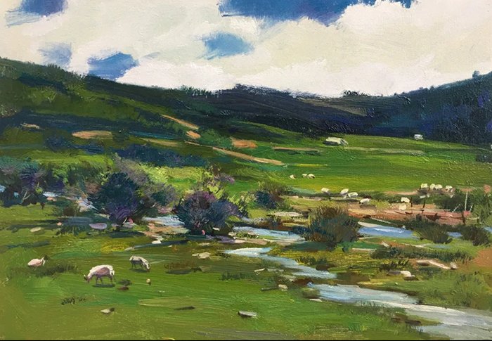 王欣 泥巴沟的牧场 布面油画 43x60cm 2020年