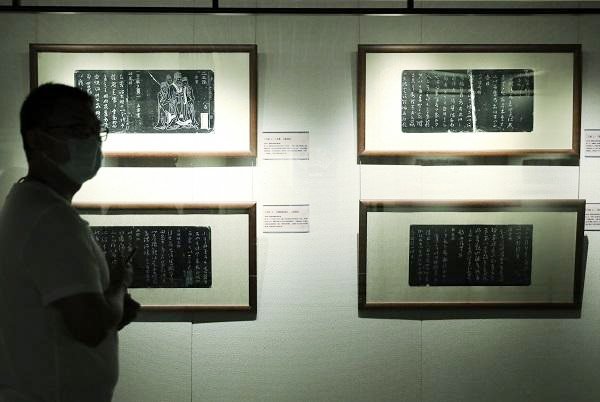 今年正值苏州园林档案馆建馆20周年,凭借“江南文化艺术节”的东风,主办方精选了拙政园、留园、豫园等十余座园林名胜的书条石、碑刻、摩崖石刻、砖额等近60幅拓片作品。展出的除了著名的留园“二王法帖”、沧浪亭“五百名贤像赞”、狮子林“听雨楼藏帖”等碑石墨宝外,还有残碑和碑拓工具、拓本、园林长卷等实物。
