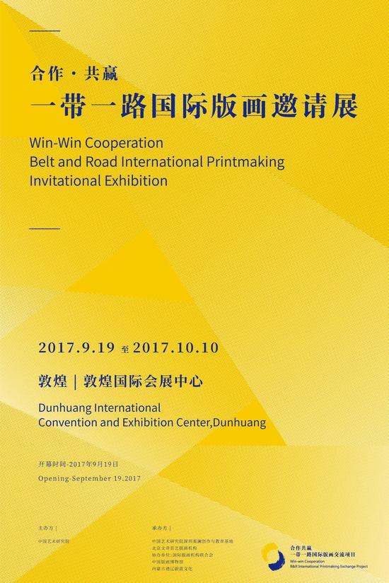 2017年9月19日,合作·共赢/一带一路国际版画邀请展将在“一带一路”的最高展示场所——第二届丝绸之路(敦煌)国际文化博览会主场馆敦煌国际会展中心开幕。[