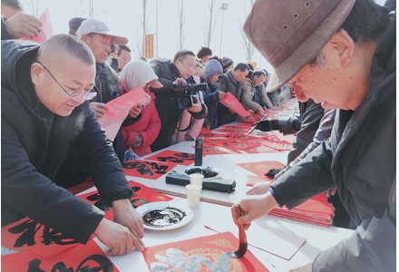 活动现场,书法家们冒着严寒,不吝笔墨,为广大革命老区的父老乡亲们书写并赠送了800余幅(副)“福”字和春联,把对基层群众的关爱、祝福和爱心表达到了笔墨中,展现在了春联上。[