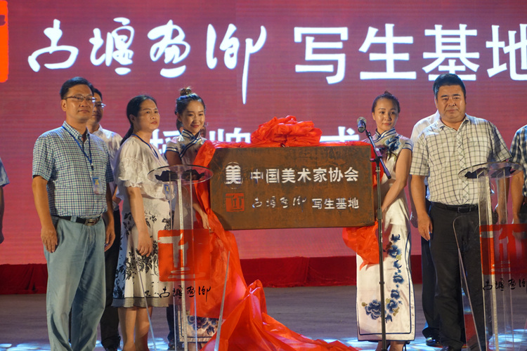 开幕式上,中国美术家协会分党组副书记、副秘书长陶勤、浙江省美协副主席兼秘书长骆献跃、莲都区区委常委、常务副区长王世强,瓯江旅游度假区管委会主任汪强华共同为中国美术家协会古堰画乡写生基地揭牌。[