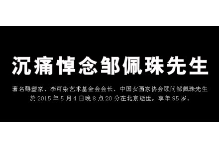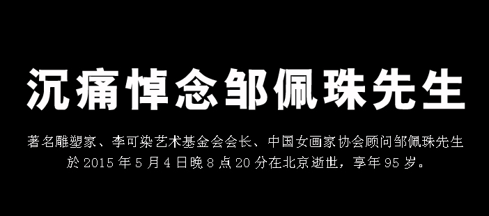 5月4日,著名雕塑家、已故著名画家李可染的夫人、中国女画家协会高级顾问邹佩珠先生与世长辞,享年95岁。[