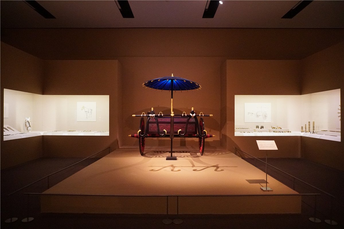 展览的第一单元 “盛世风貌”力图通过满城汉墓出土的煌煌器物来展现这一时期非凡的创造力。刘胜身历汉景帝、汉武帝两朝,彼时正值西汉盛世时期。鼎盛的国力使整个社会呈现出昂扬向上、积极进取、富于创造的时代风貌。无论是驭兽的力士,还是蓄势而飞的夔龙,都与汉代人自信进取的精神高度契合;。劲弩长戟、坚甲利刃伴随着大汉将士驰骋疆场、建功立业,也印证了汉代人的英勇尚武精神。登峰造极的鎏金、错金银、镶嵌工艺,色彩鲜明、线条流畅的彩绘技法,都彰显了盛世时期的非凡创造力。冶金、天文、度量衡领域的卓越成就则使汉文明傲立于世界文明的前列。
