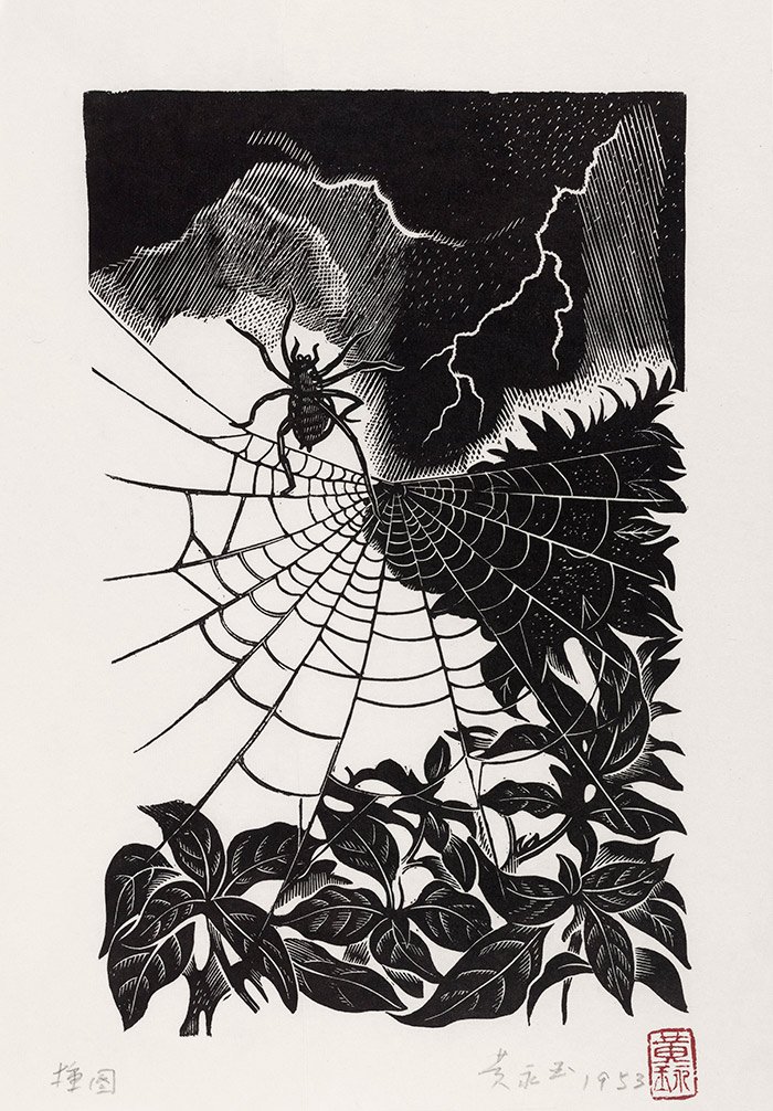 大风雨和蜘蛛 25.5×16cm 1953-1954年 冯雪峰《寓言》插图