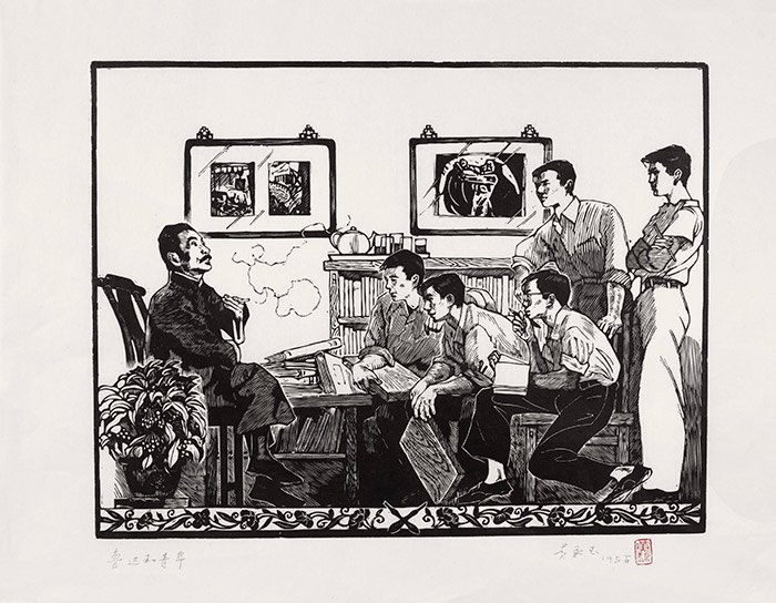 鲁迅先生和青年木刻工作者 35×45cm 1955年