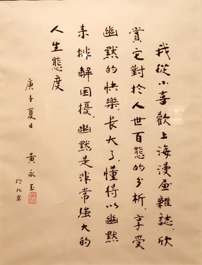 黄永玉自述:“我从小喜欢上海漫画杂志,欣赏他对于人世百态的分析,享受幽默的快乐。长大了,懂得了以幽默来排解困扰,幽默是非常强大的人生态度。”