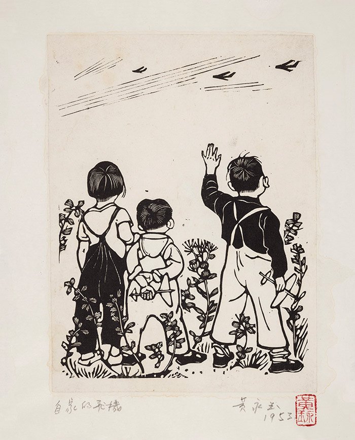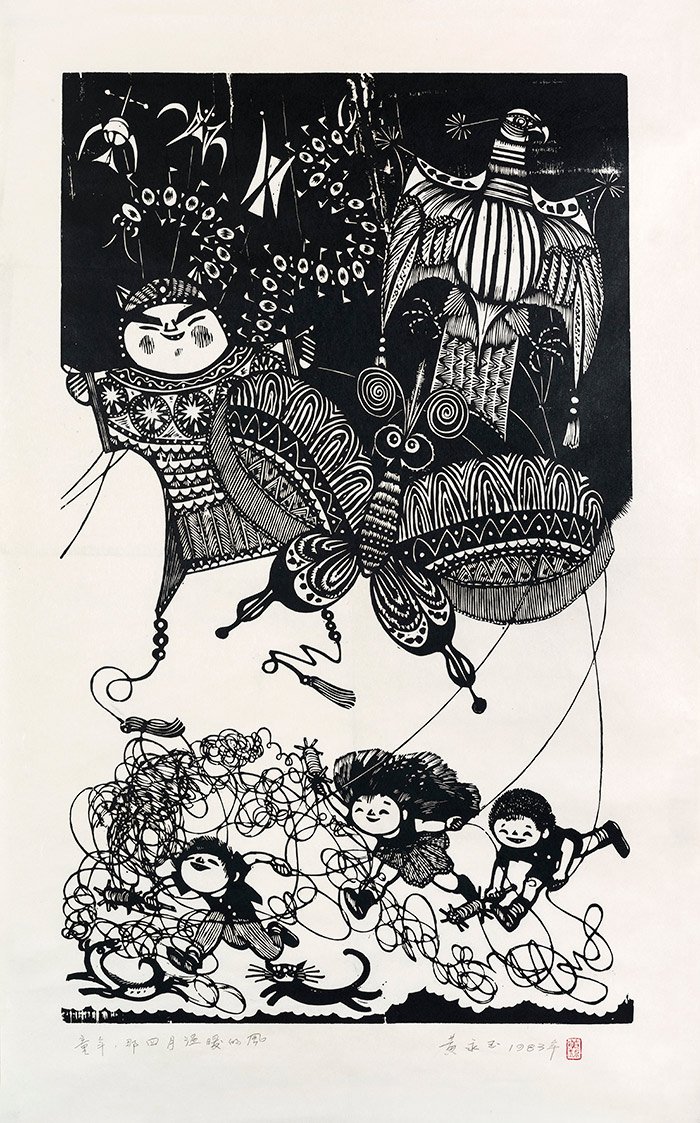 他说:“黄老的版画大多以线条为主,他对于黑白的运用灵活自如,刀法变换、线面具下、游刃入木、神而明之。其构思立意新颖绮丽,有感而发且想落天外,画面充满童趣与幽默,形成了清新明朗的意趣和情调。黄老以其过人的天赋才情,自出机杼、独成一家,他为中国版画艺术的发展做出了重要的贡献,在现代版画史中占有特殊地位。”