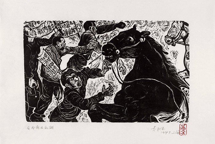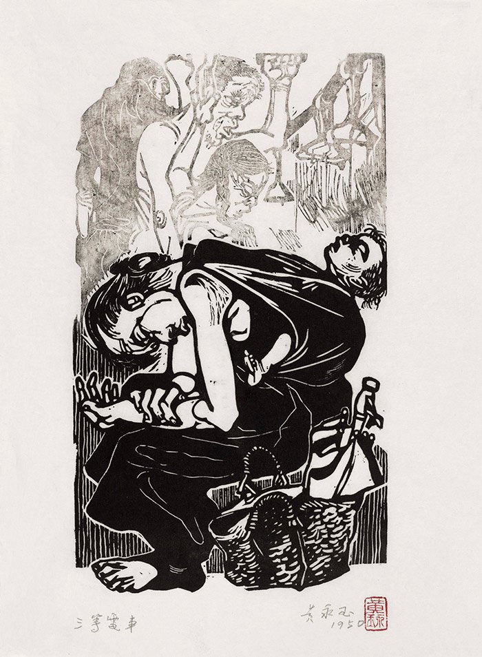 出乎意料的是,黄老一生的木刻原版保存得完好。在筹备展览前夕,他面对着这些跟随他辗转大半个世纪,已被油墨浸染的黝黑发亮的木板,感慨道:“我怎么活过来的?要不看到这些木板,我几乎忘记了。唉,千山万水贴着肉的、贴着肉的什么呢,贴着肉的骨头吧!这一堆骸骨啊!”