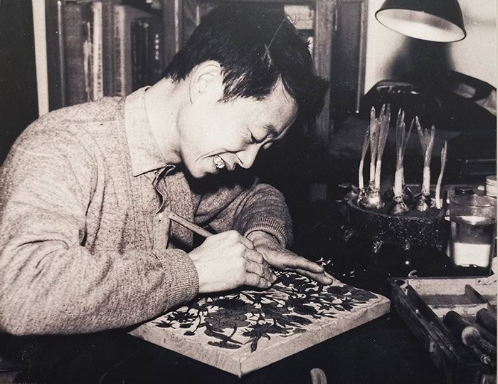 1962年,黄永玉在校尉胡同美院宿舍刻花卉
