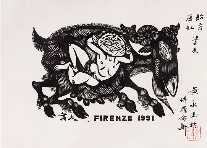 1991年,黄永玉刻于翡冷翠(佛罗伦萨)的最后一张木刻版画