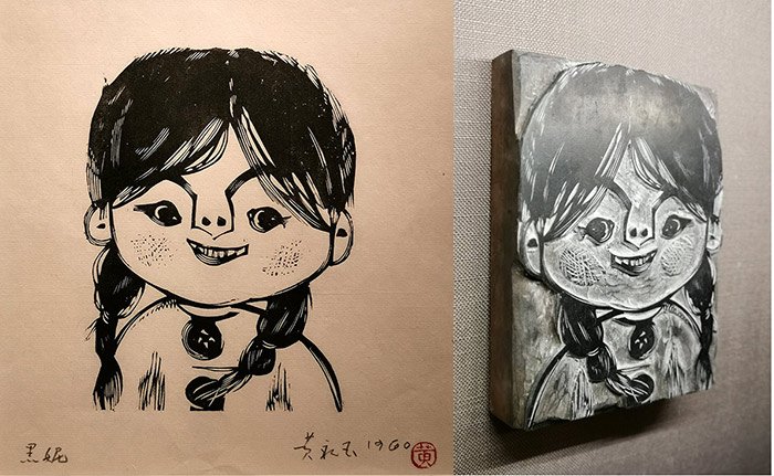 1960年,黄永玉为女儿刻像《黑妮》及木刻原板