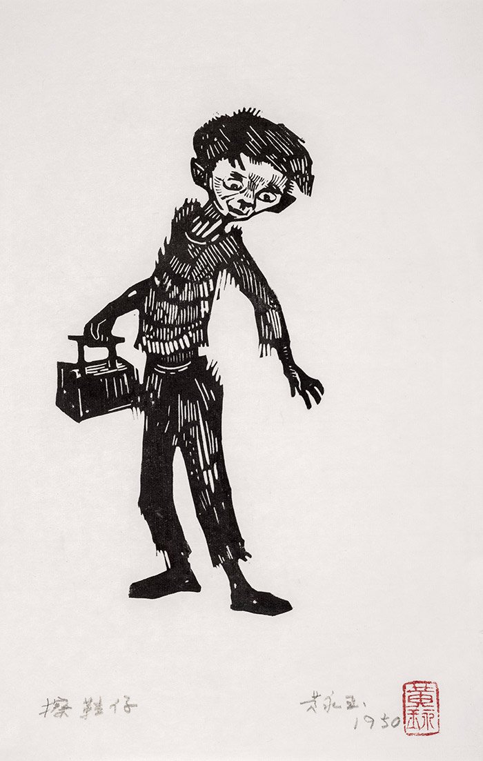 擦皮鞋的孩子 18×10cm 1950年