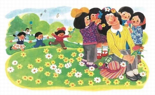 何艳荣(1934~ ),浙江定海人。1957年开始创作,画的就是儿童题材。数十年从事儿童画创作,有插图,有封面,有单幅的,也有整本的。一开始画的是版画,偶尔也作国画,还给自己的画配儿歌,后来一直用水粉作画。